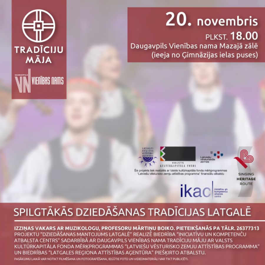Projektu “Dziedāšanas mantojums Latgalē” realizē biedrība “Iniciatīvu un kompetenču atbalsta centrs” sadarbībā ar Daugavpils Vienības nama Tradīciju māju ar Valsts kultūrkapitāla fonda mērķprogrammas “Latviešu vēsturisko zemju attīstības programma” un biedrības “Latgales reģiona attīstības aģentūra” piešķirto atbalstu.