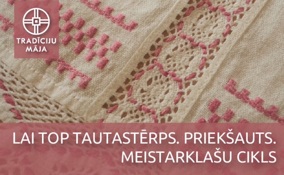 Priekšauts goda tērpu padara greznāku un liecina par tā nēsātājas čaklumu. Nāc noskaidrot, kā tiek darināti priekšauti, kādas tehnikas tiek izmantotas to darināšanā un izgatavo savu priekšautu, ko vilkt pie goda tērpa! Meistarklasi vada meistare, tautastērpu darinātāja Maija Kulakova.